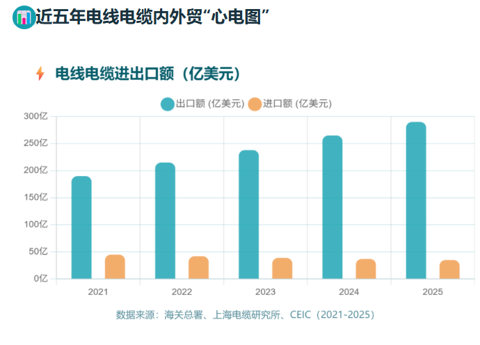 小新解读:这五年线缆行业彻底告别 “规模粗放增长”,转向 “结构提质”。出口额突破 299 亿美元,福建等省份出口增速超 70%,国产替代趋势越来越明显;但进口仍集中在超高压、航空航天等高端特种线缆领域,行业 “大而不强” 的矛盾依然突出。2026 年,行业分化会更严重,抓住风口的企业赚得盆满钵满,守着传统业务的只能继续拼价格。